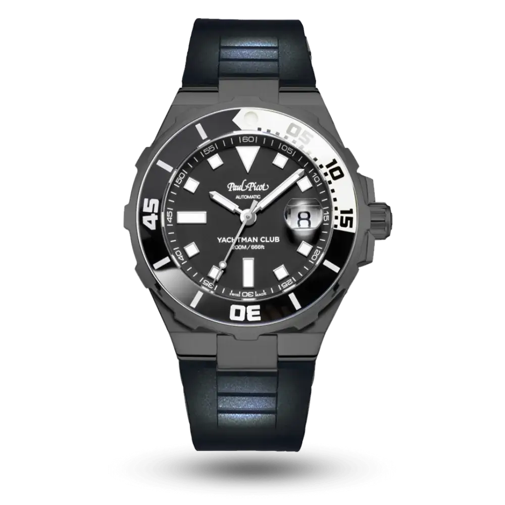 Paul Picot Yachtman Club Blanc, Acier DLC noir sur Bracelet caoutchouc – P1251N.NBL.3614C
