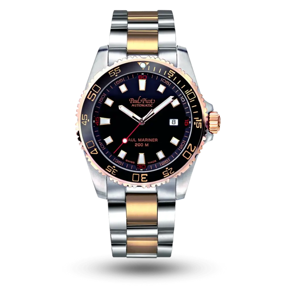 Paul Picot Paul Mariner III Noir, Bicolore Or jaune 18k sur Bracelet métal – P4352.SRG.CN.4004.3624